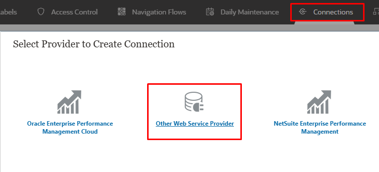 Once you are on the Connections page, select “Other Web Service Provider”.
