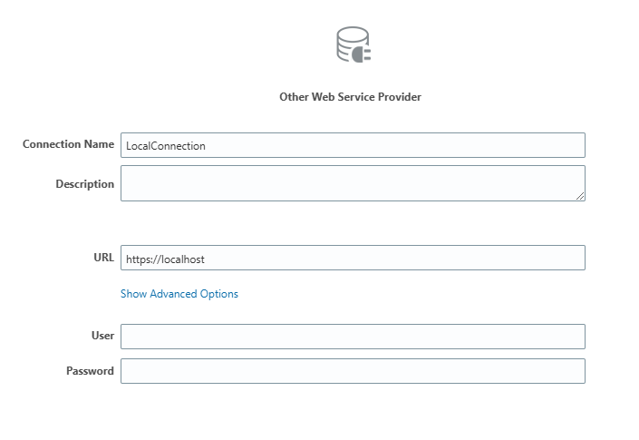 The benefit of using the localhost link instead of ...oraclecloud.com is that you do not need to adjust the link when migrating the connection from Test/Dev to Prod. However, you will need to update the User and Password!